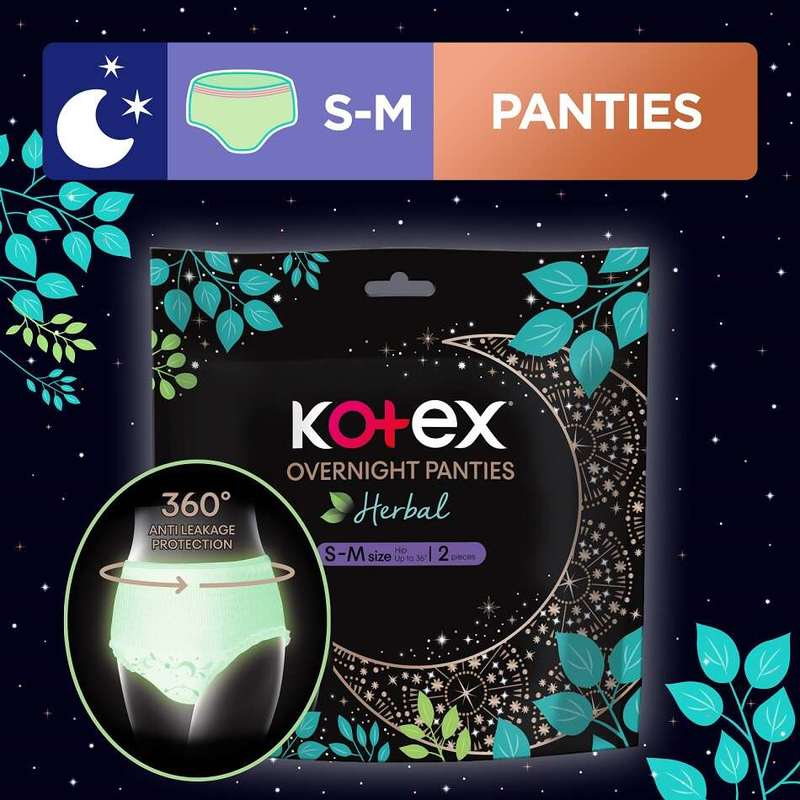 [CARTON DEAL]KOTEX Regular/Herbal Overnight Panties Sleepwell 360° AntiLeakage Protection(2pcs/pk) Panty Sanitary Pad