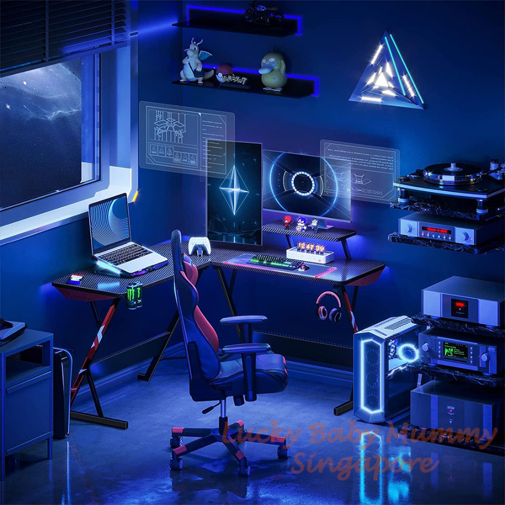 [Local Seller] Carbon Fiber L Shape Gaming Table / Desk / Study Table/ Office Table/Computer Table/Laptop Table / SG