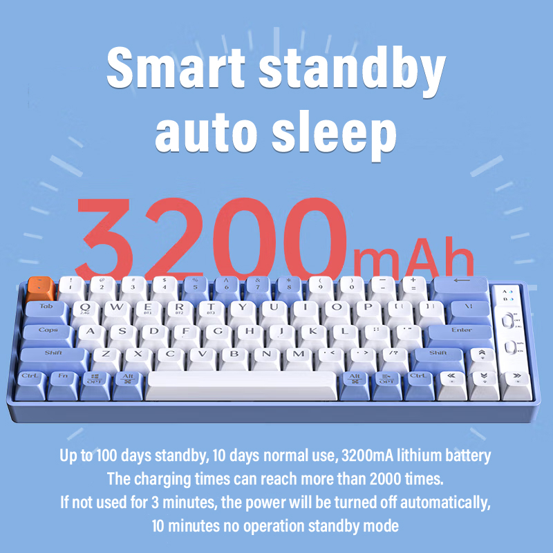 [SG Stock] Wireless Keyboard Hotswappable Mechanical Keyboard With 3Model Bluetooth+USB+2.4G 65 Keys Portable Rechargeable Colorful Lights Keyboard