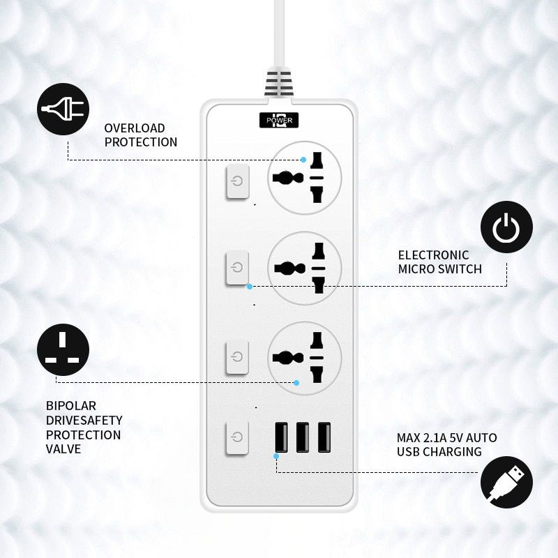 ?Bundle of 2?UK Multi Extension Plug Power Strip 2500W With USB Charger Output 3.1A Charger