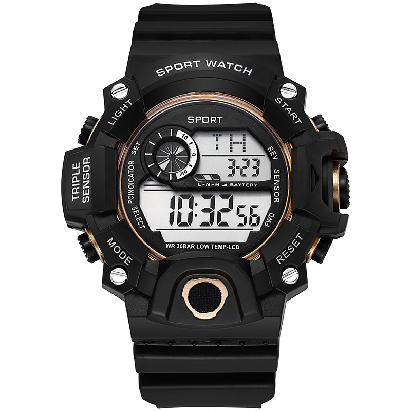 Men Watch Men's Watch Student Large Dial Silicone Sports Multi-Function Cold Light Waterproof Electronic Watch