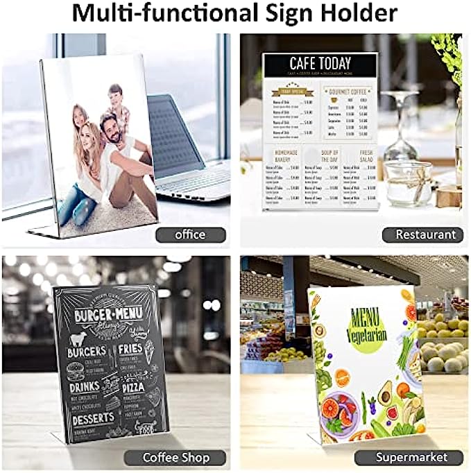 • Multipurpose Widely Use.Sign display holder perfect for announcements, photos ,images, brochures. It can be used by office,home, restaurants, trade shows,any other location where you want to display your signs. It helps you spread information by making it accessible to everyone.