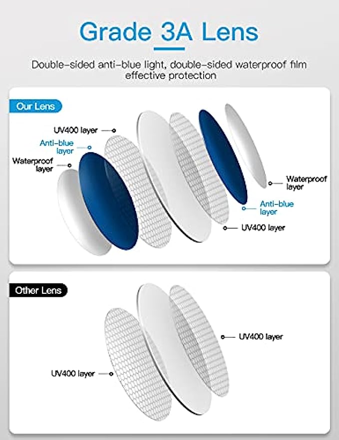 ☀35% ANTI-BLUE LIGHT.Can effectively block harmful blue light from TV, mobile phone, computer, etc.Beneficial blue light can pass through