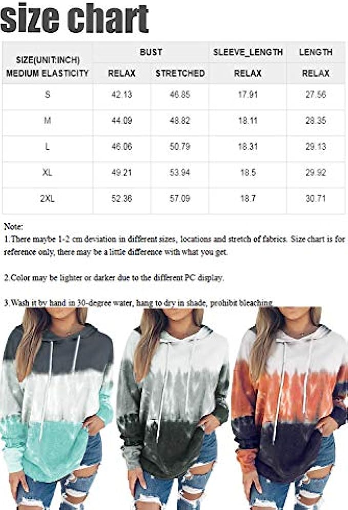 Polyester,Spandex Machine Wash Material:95%Polyester+5%Spandex,fabric has some stretch,soft lightweight and soft,comfortable to wear Features:Long Sleeve,Color Block,Tie Dye Printed,Drawstring Details,With Pocket,Casual Chic Style,Makes you fashion in this fall and winter Match:Colorblock Tie Dye Pullover Sweatshirt looks great pairing with high waist leggings/shorts/Skirts/jeans etc Occasion:Color Block Hoodie Sweatshirt is suitable for Outdoor,Sports,Daily,Club,Dates,Work,Shopping,School,Holiday,Also perfect for Spring,Autumn,Winter Garment Care:Hand wash,machine washable,line dry,low iron when necessary,do not bleach;Package Contents:1 x Hoodie Sweatshirt Tops