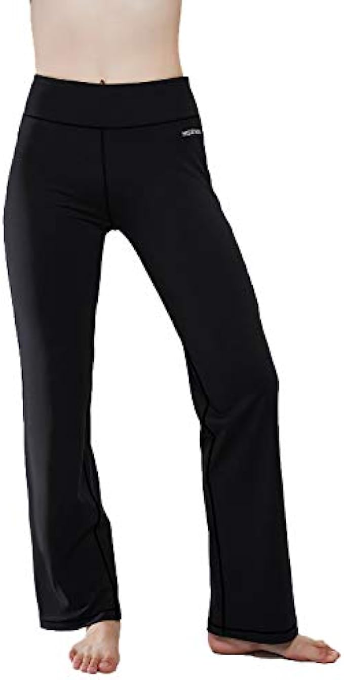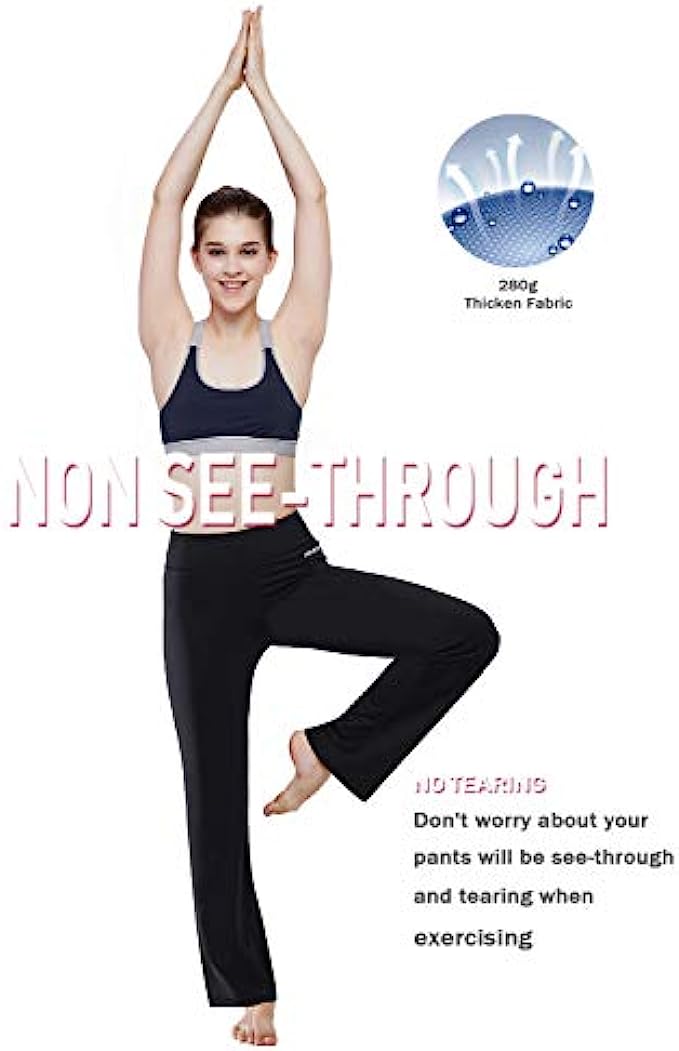 HISKYWIN Inner Pocket Yoga Pants 4 Way Stretch Tummy Control Workout Running Pants, Long Bootleg Flare Pants