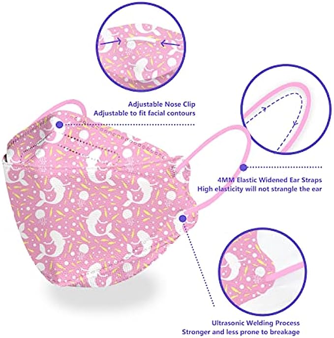 • 【Trustworthy High Quality】- This mask is designed in 3D to fit your child's face and nose at all angles with 4MM width ear straps, so you won't feel tight when wearing it. The adjustable nose strip and highly elastic ear straps fit your child's face well, leaving enough breathing space to avoid feeling stuffy when wearing the mask for a long time.