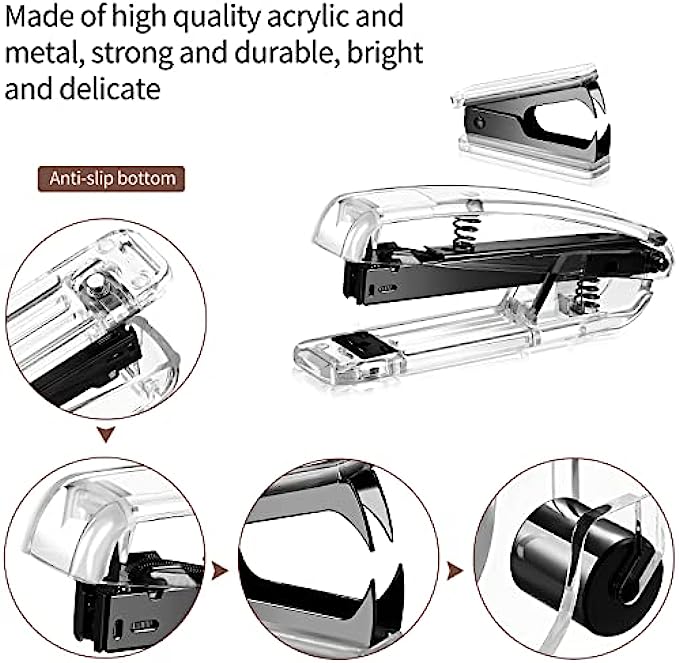 Quality materials: the stapler, tape dispenser and stapler remover are mainly made of acrylic and metal, clear and bright; Touch smooth and comfortable, not easy to break, durable, elegant and beautiful, very suitable for desktop office supplies