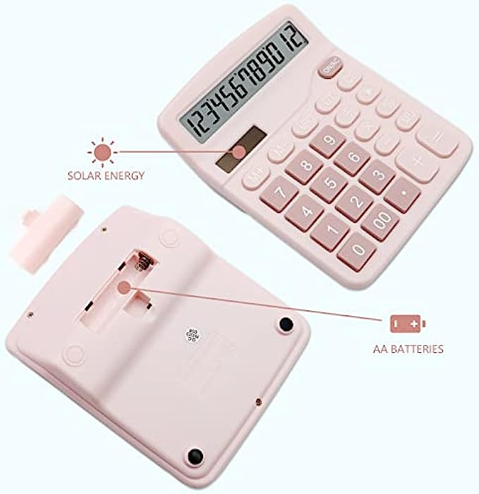 Dual Power Calculator- Electric digital calculator has dual electric drive, light energy and button battery; It can switch the power mode according to the environment, which is more durable and more convenient. NOTE: The calculator will turn itself off after about 6 minutes of being idle.