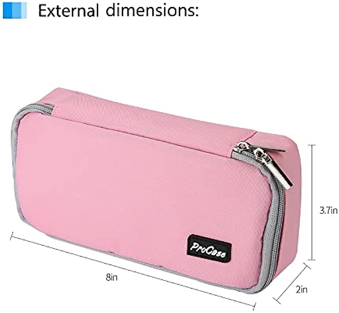 ProCase Pencil Bag Pen Case, Large Capacity Students Stationery Pouch Pencil Holder Desk Organizer with Double Zipper, Portable Pencil Pouch for School Office Supplies -Pink