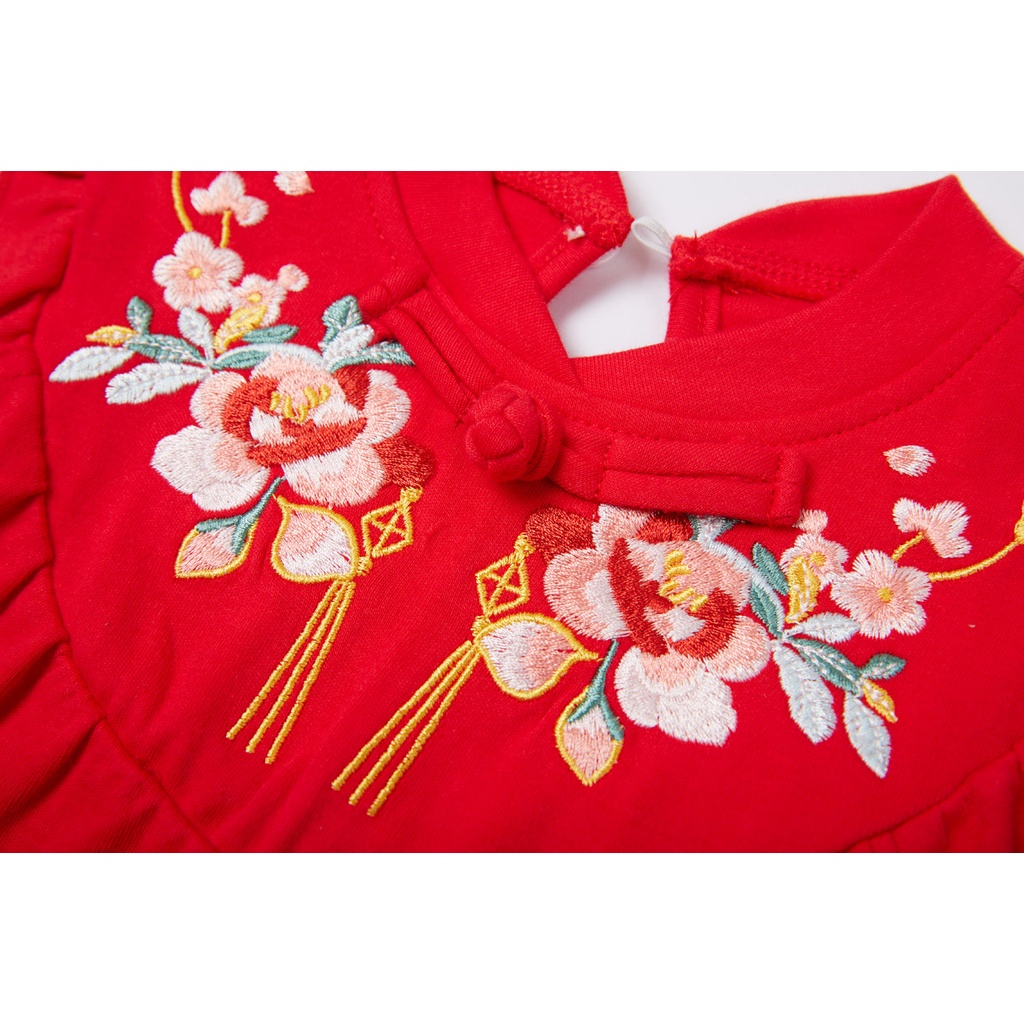 Racial Harmony Day Costume Baby Girl Cheongsam Romper Red w Pink Flowers Chinese New Year Romper CNY Clothes
