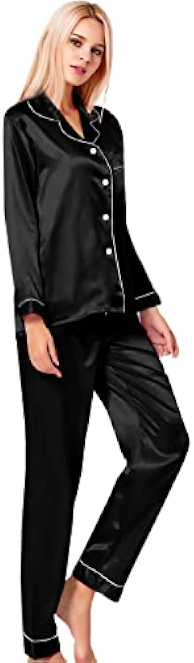 • Materials: This lightweight pajama set is made of lightweigh silk satin, soft,breathable and skin-friendly, help you have a sound sleep.