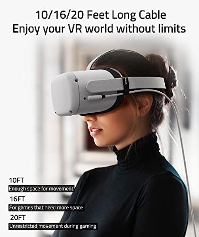 Flexible and Comfortable: This 16 ft long cable gives you maximum freedom of movement without being restricted while immersed in the VR world. At the same time, considering the users' experience, the regular USB C port is especially changed to L Shaped design to enhance customers’ comfort.