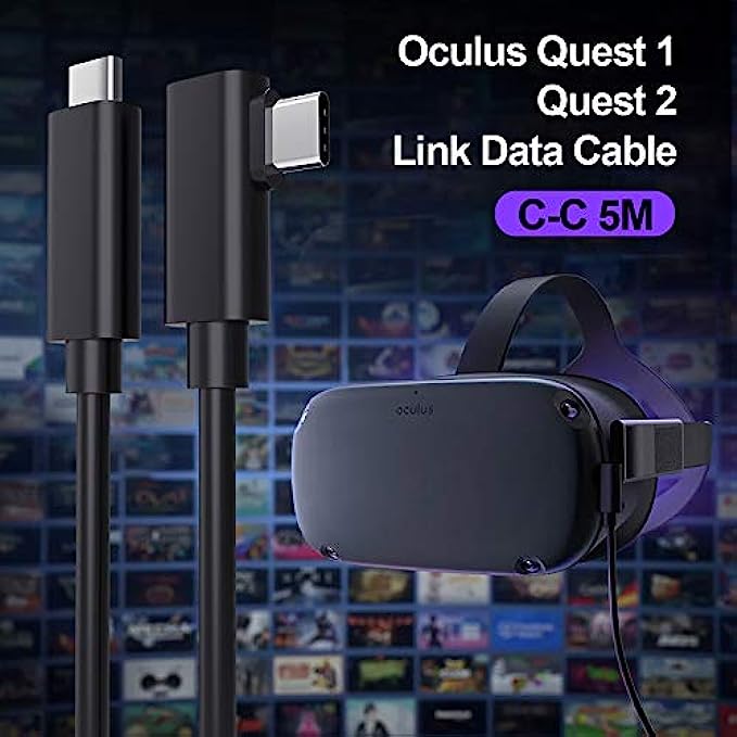 VR Streaming Link Cable Compatible for Oculus Quest, Cuxnoo Virtual Reality Headset Cable Angle USB 3.2 Gen1 C-C High-Speed Data Transfer, Fast Charging Cord, 15FT