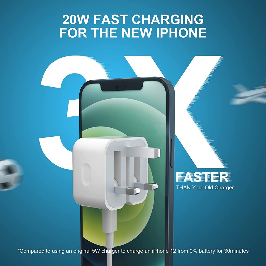 Anytrox Phone Fast Charger Cable, 20W PD Power Adapter, Phone 15/14/13/12/11Pro Max/Pad
