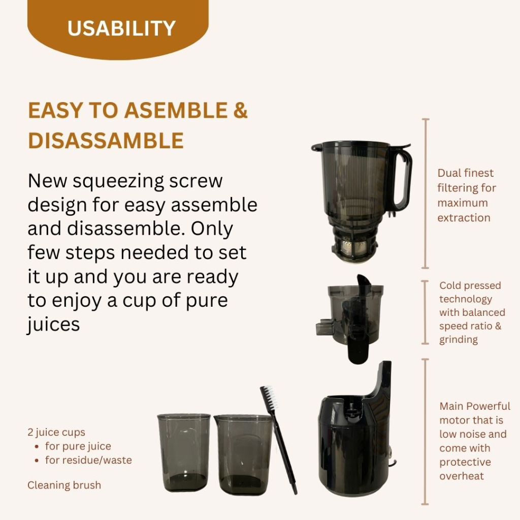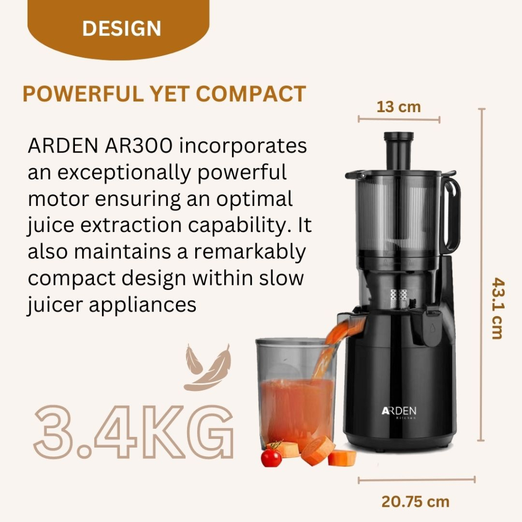 Arden Extra Large Cold Press Slow Juicer, Easy to Clean, Pulp Measuring Cup, Less Oxidation