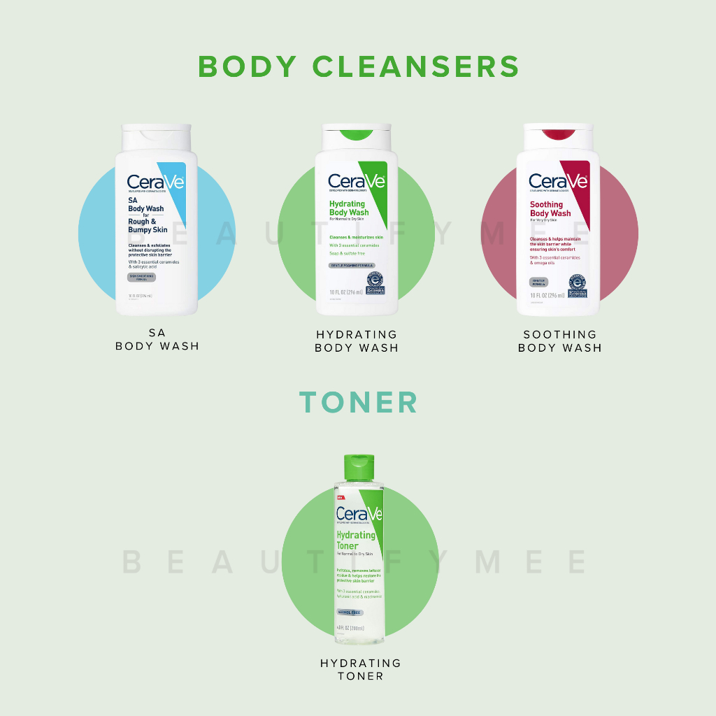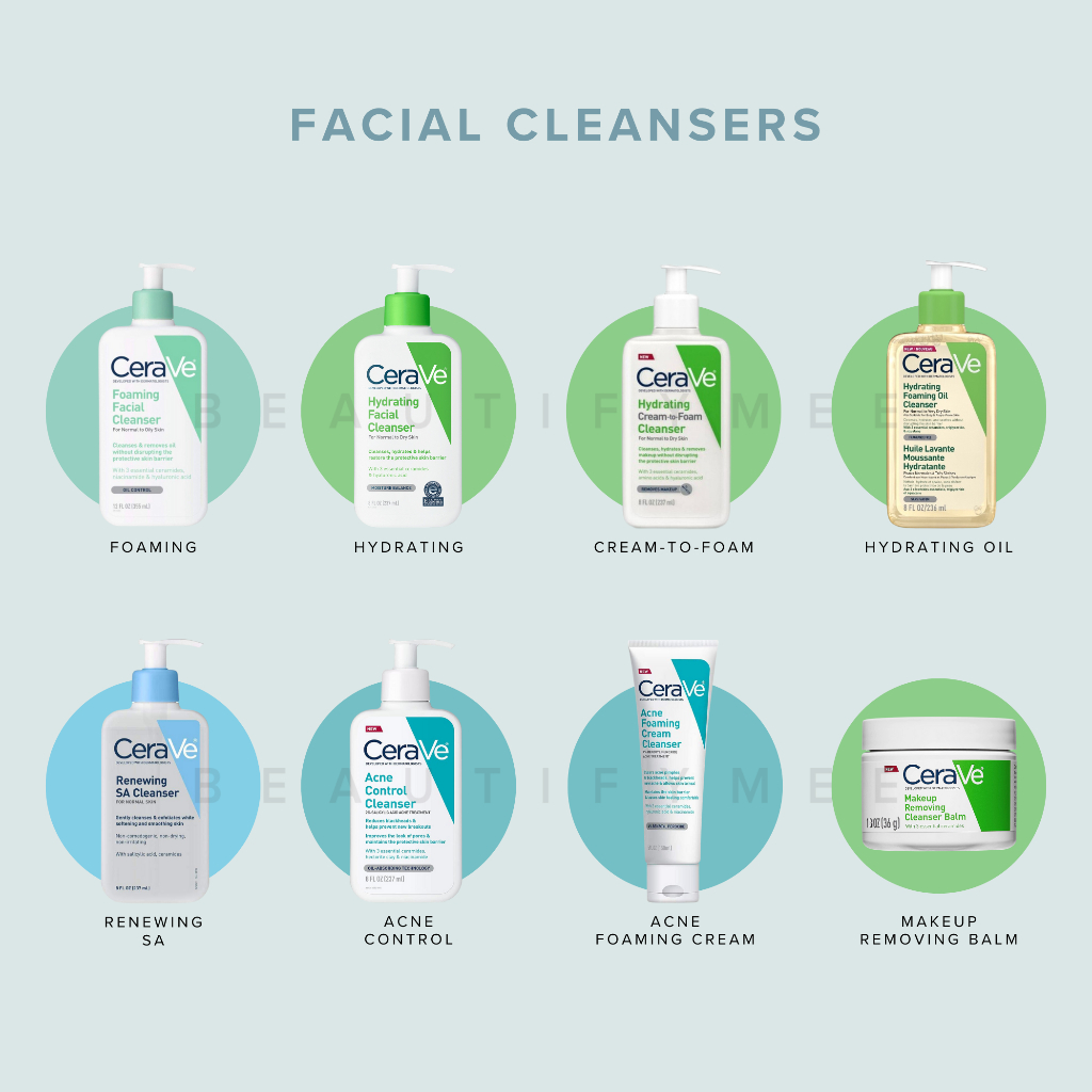 CeraVe Cleanser (Hydrating, Foaming, Renewing SA), Lotion (Daily, AM, PM), Moisturizing Cream, Resurfacing Retinol