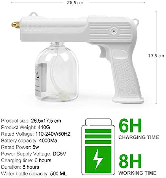 Rechargeable Sprayer: 2600mAh lithium battery powered wireless nano electric gun, 2H charge, continuous working time up to 3H! 110V-240V universal rated voltage, safe and convenient.
