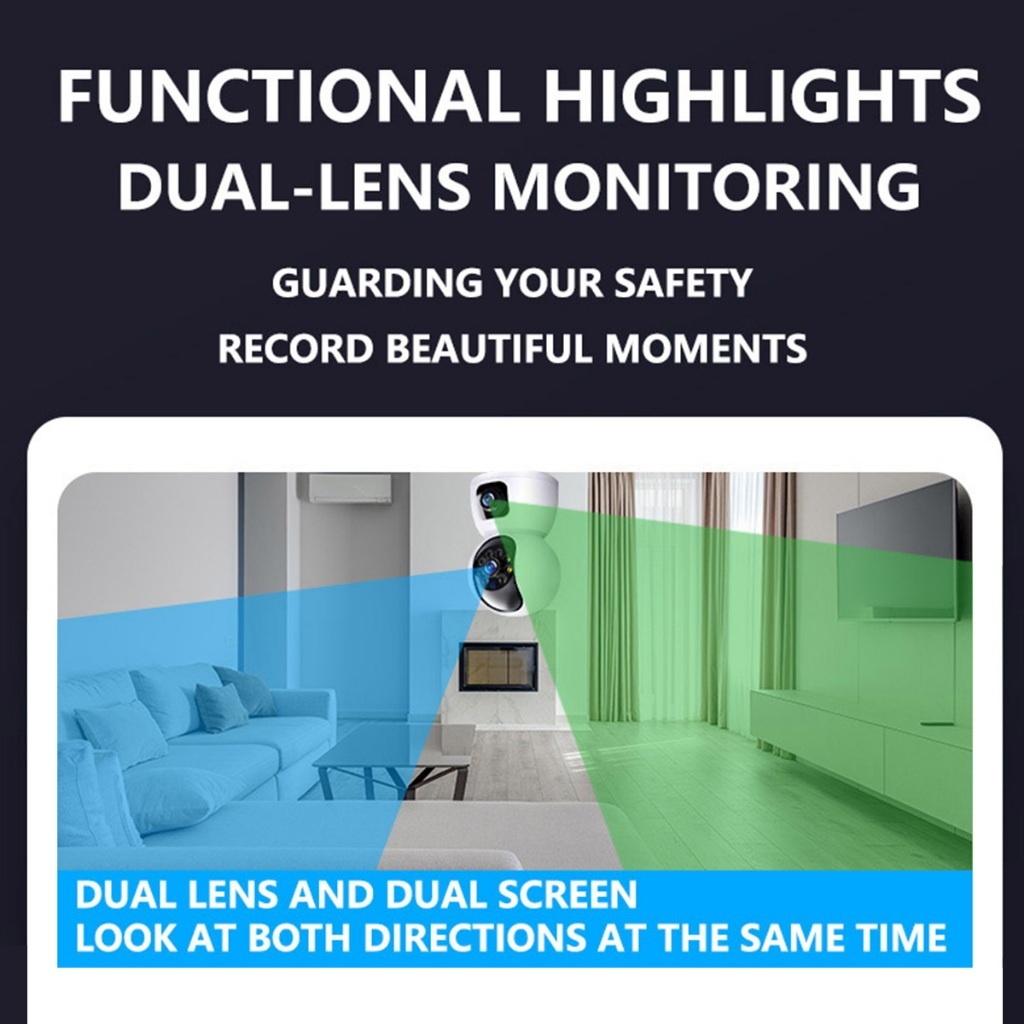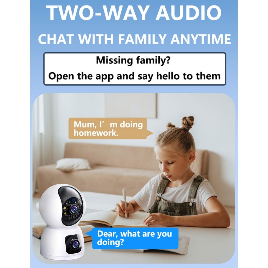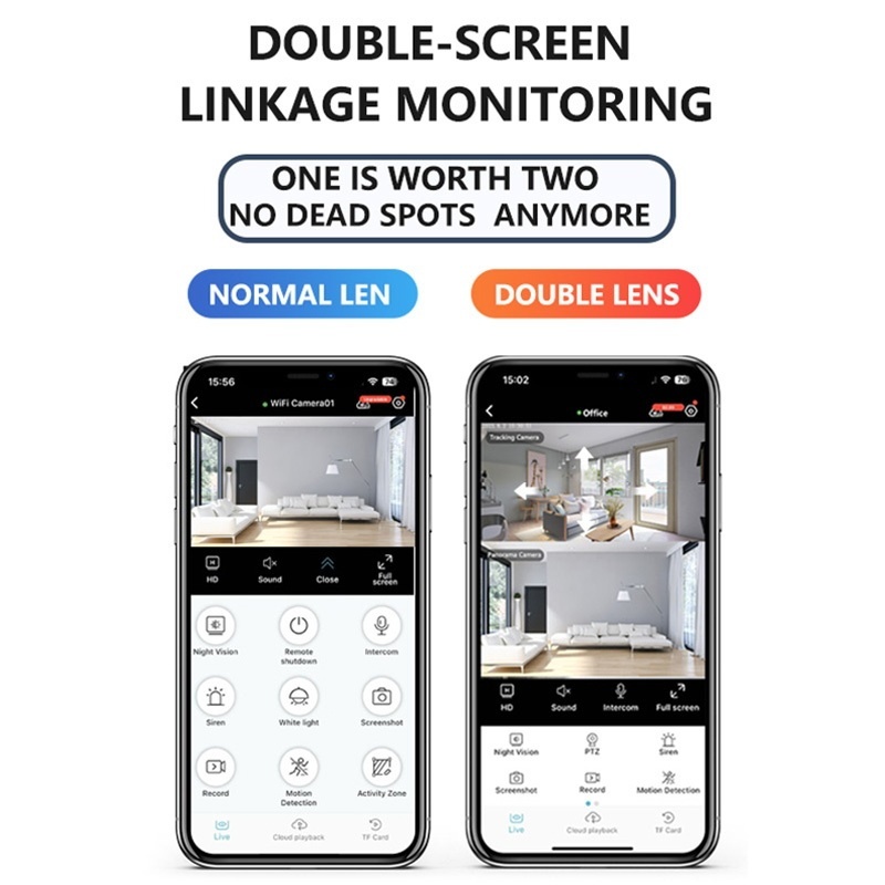 Dual Lens -dual screens CCTV home security camera Indoor 3MP 2K Two Way Talking Camera Phone Control Built-in Microphone