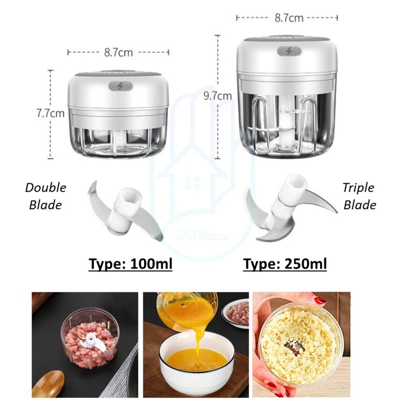 Electric Food Chopper / USB Garlic Chopper / Kitchen Blender Mixer / Vegetable Meat Chilli Grinder Machine