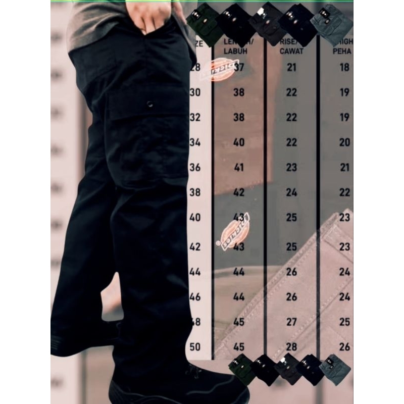 Family Size Dickies Multi pocket Cargo pants unisex Slim fit .28 Sampai 49" Plus size