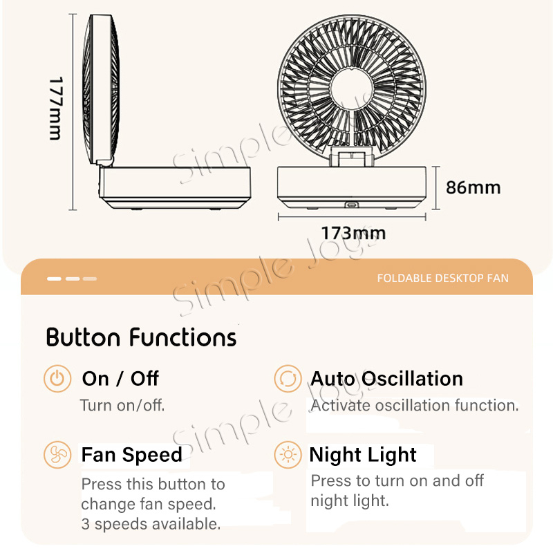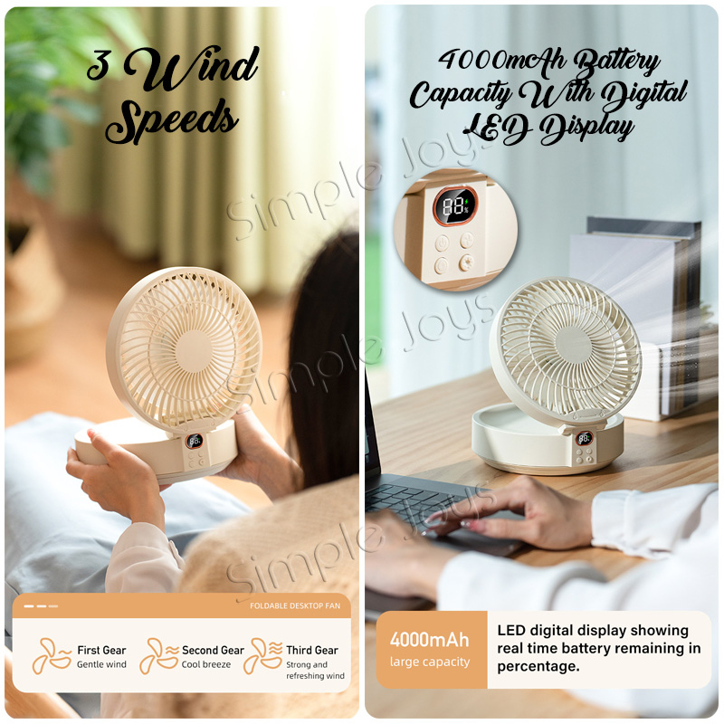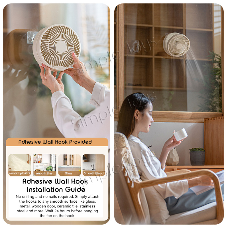 Hanging Wall Fan USB Rechargeable With Auto Oscillation / Remote Control / Night Light For Desk
