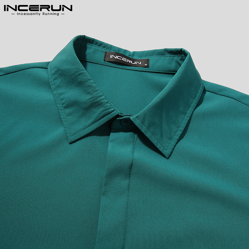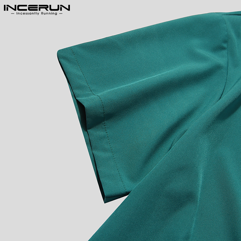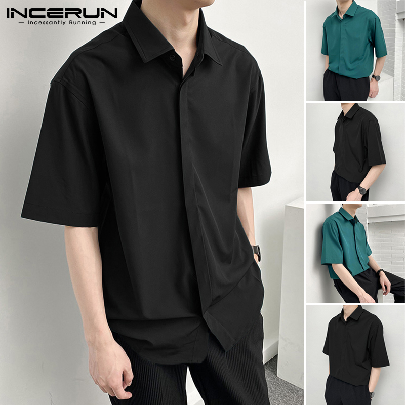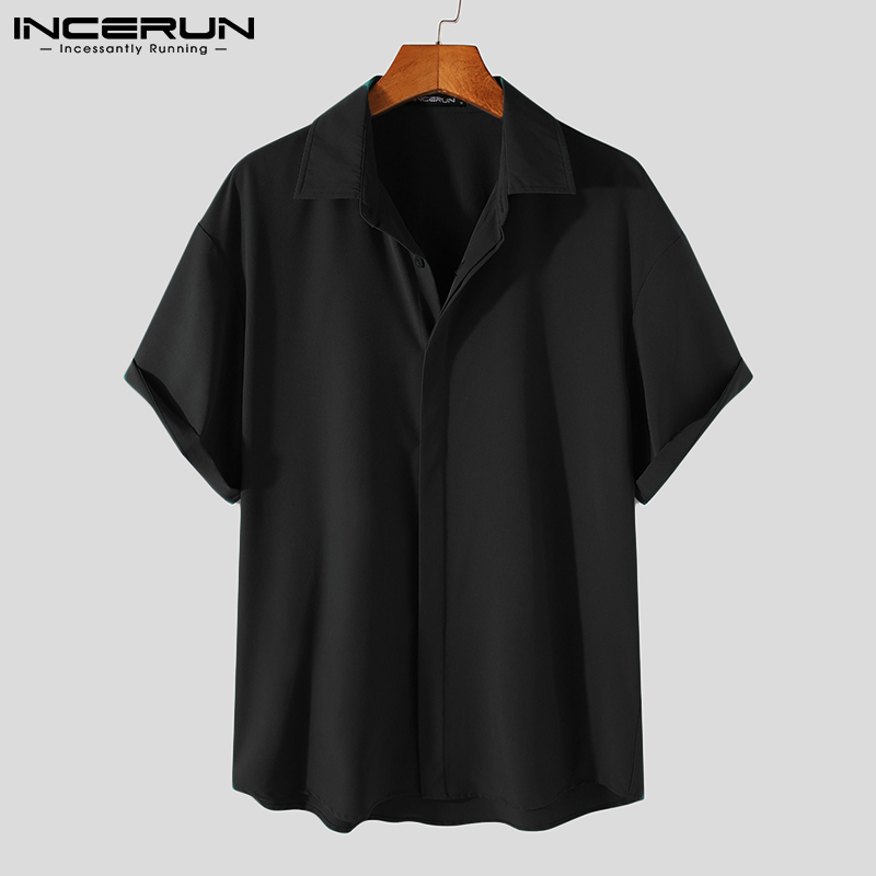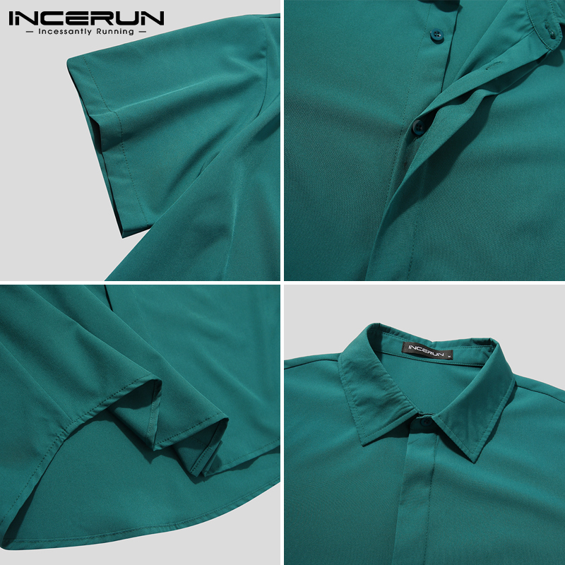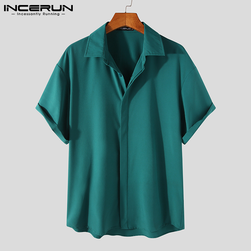 INCERUN Men's Fashion Plain Short Sleeve Buttons Loose Casual Shirts