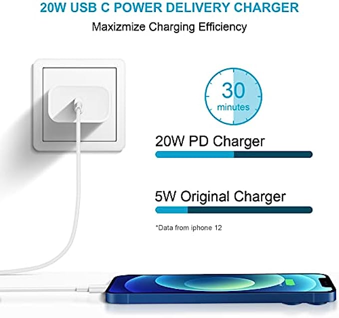 • 【INCORIC PD 3.0 Fast Charger for iPhone】 iPhone Fast Charger equipped with 20W PD 3.0 USB Type C power delivery wall plug, PD 3.0 Quick-Charge USB C port provides Max 20W output power, charge your device up to 3x faster than original 5W charger,charging your iPhone 13 up to 50% in just 30 minutes, saving over 1.5hrs for you.