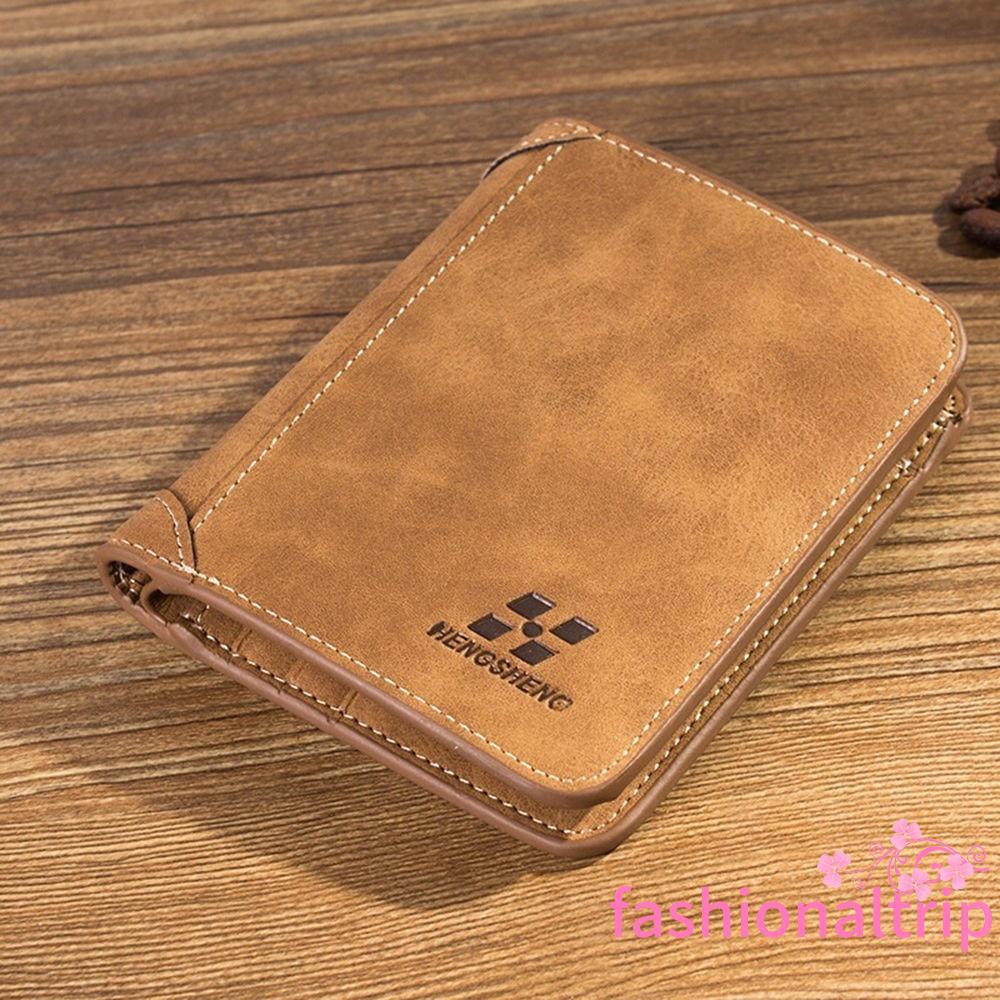 ITT-New Men PU Leather ID credit Card holder Clutch Bifold Coin Purse Wallet