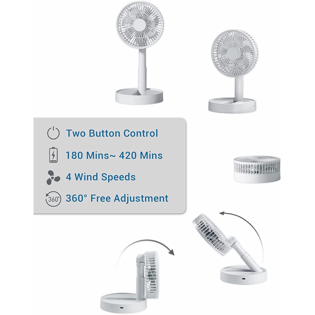 Product Quality:Above Average Value For Money:Good Buy with shop voucher included Best Feature(s):USB Chargeable This product is a portable and light weighted Telescopic Folding Fan with 3 level of wind speeds. Thanks to the seller for giving out a good shop voucher. It works well after testing. Less noisy when using the strong wind speed.
