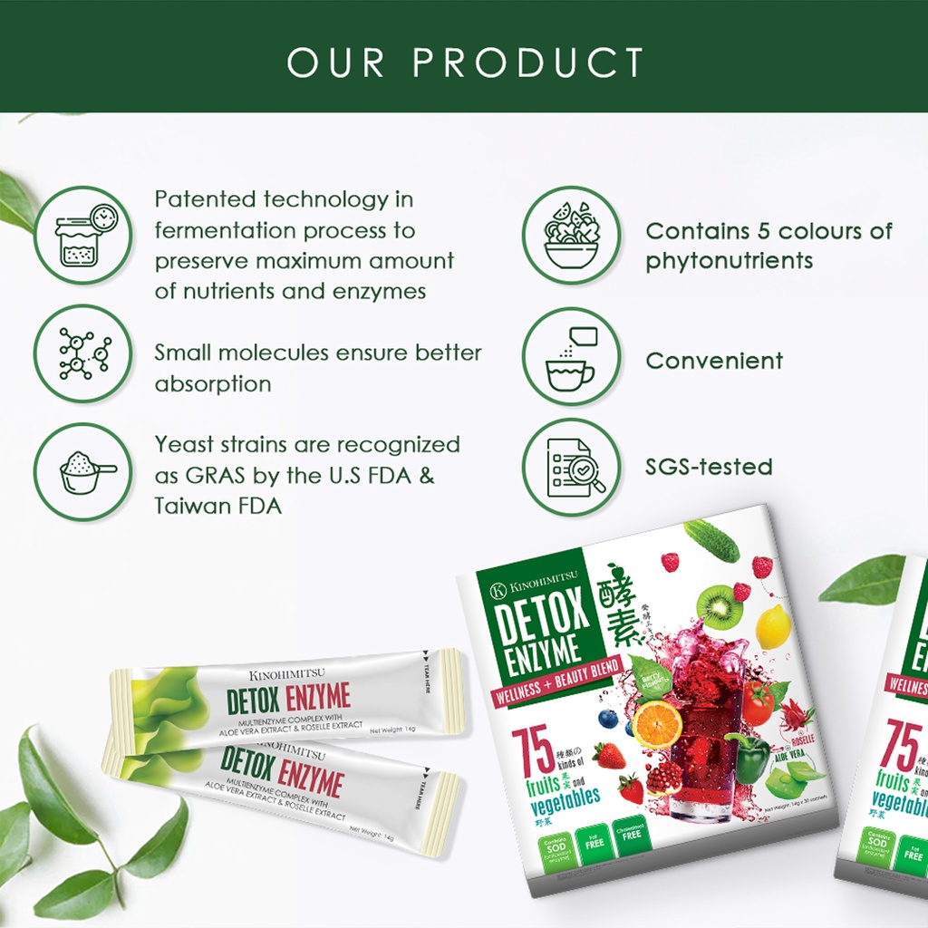 Kinohimitsu Detox Enzyme Plant-Based Supplement Sachet 14g - Constipation Relief, Supports Digestion