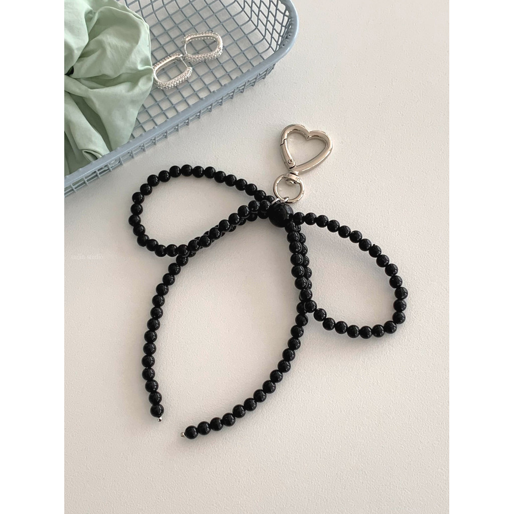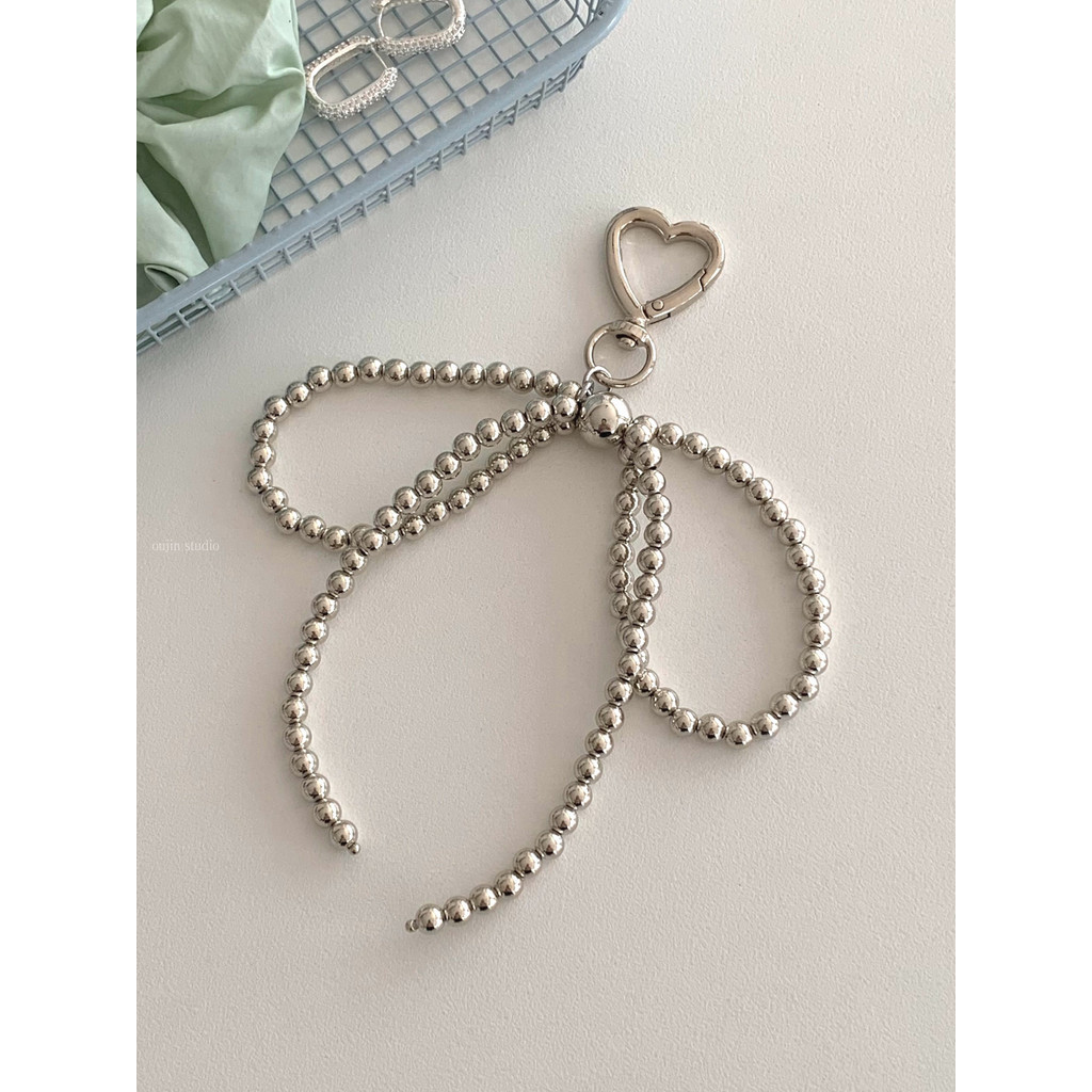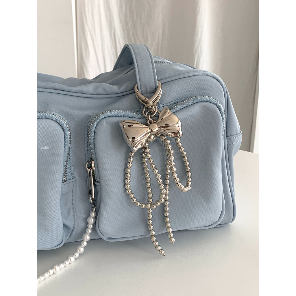 Korean Niche ins Sweet Girl Pearl Silver Bow Beaded Bag Pendant Car Keychain Bag Pendant