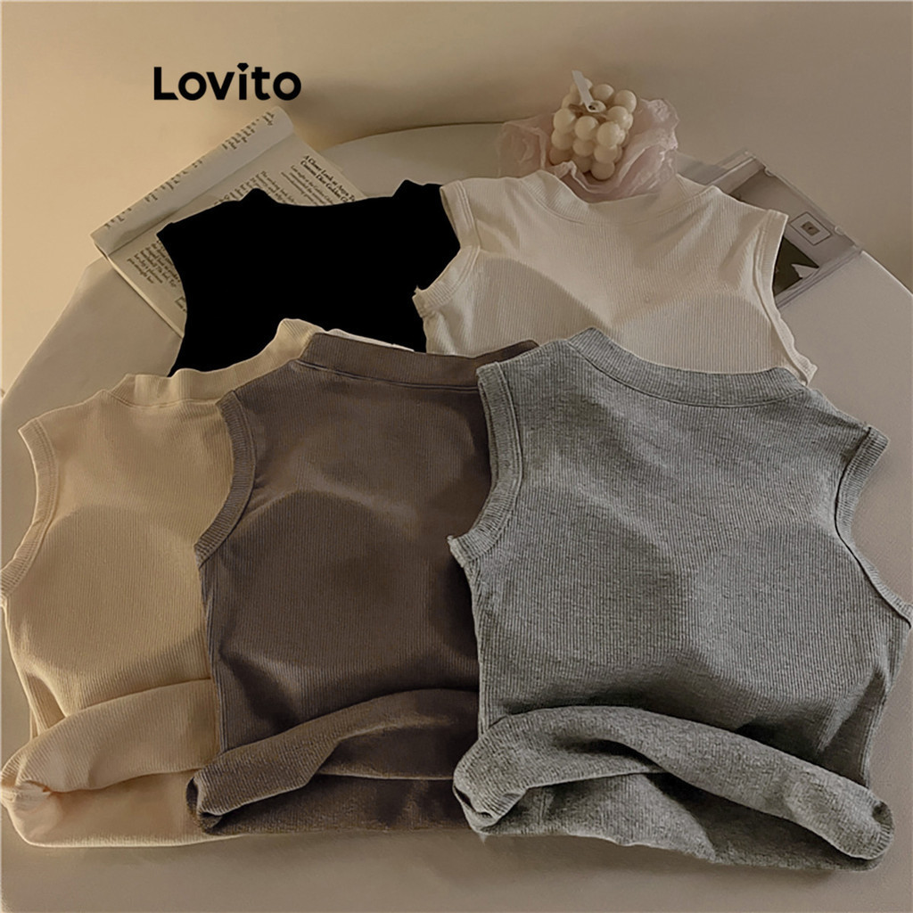 Lovito Casual Plain Round Neck Tank Top for Women LNE34039 (Brown/Dark Grey/White/Black)