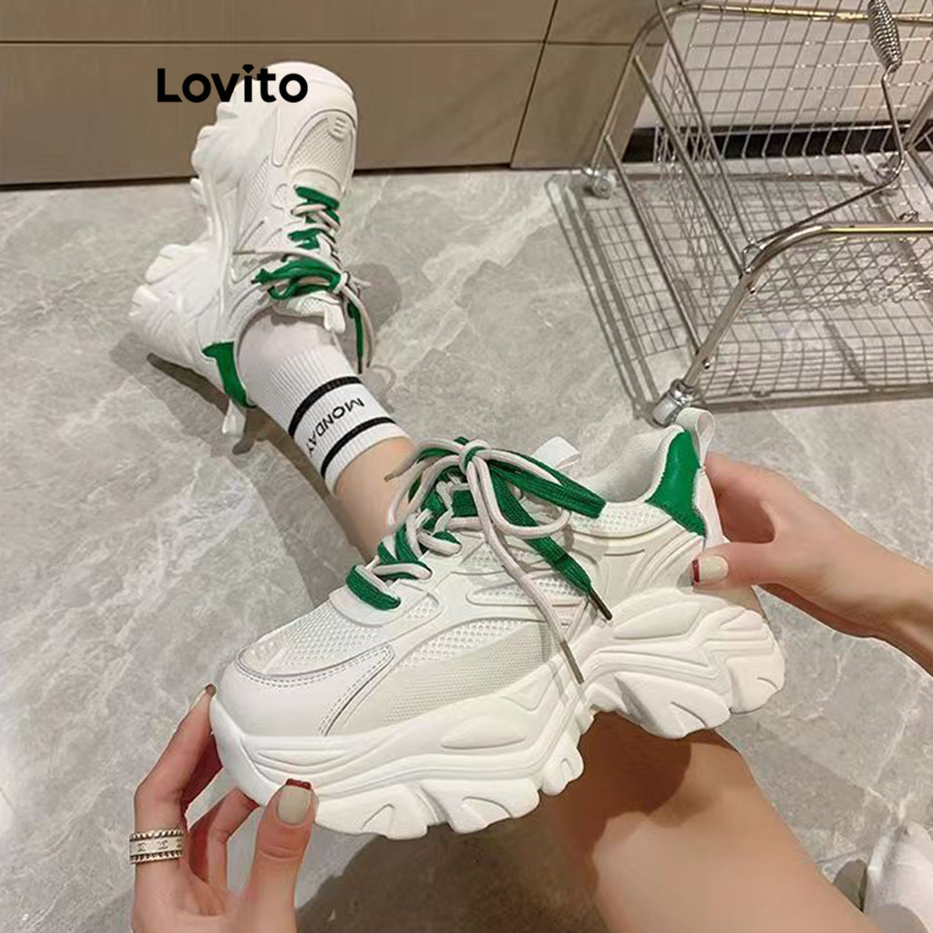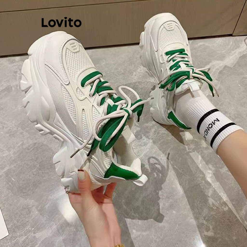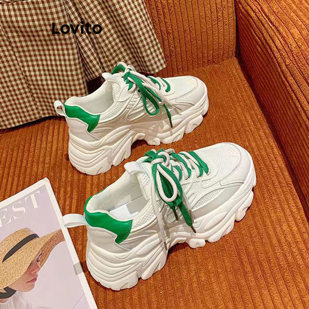 Lovito Preppy Plain Contrast Mesh Dad Shoes Thick Sole Sneakers for Women LFA22012