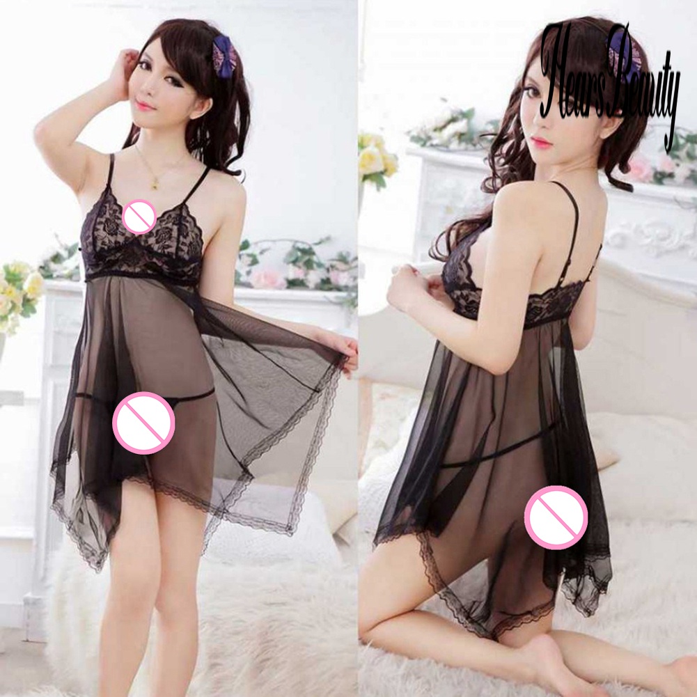 LSG Women Sexy Floral Lace See Through Babydoll Nightdress G-string Sleepwear Set