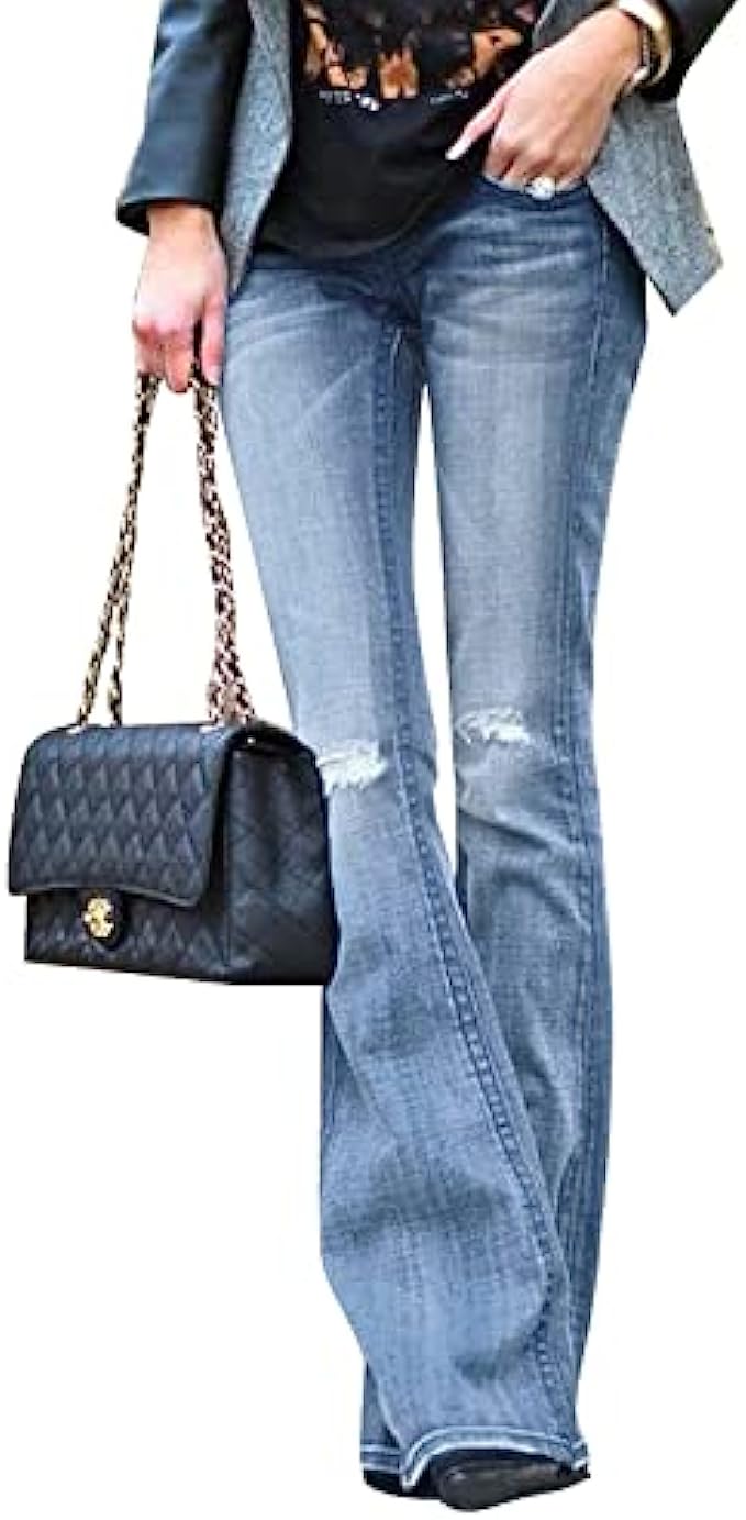 luvamia Women's Ripped Flare Bell Bottom Jeans Pants Retro Wide Leg Denim Pants