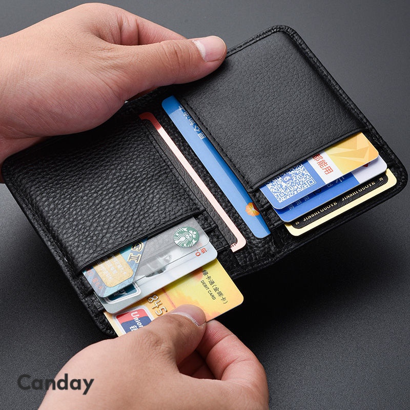 Wallet For Men Genuine Cowhide Leather Men Wallet Bifold Short Wallets Small Mini Card Holder Male Purse Coin Pouch Multi-functional Cards Pocket