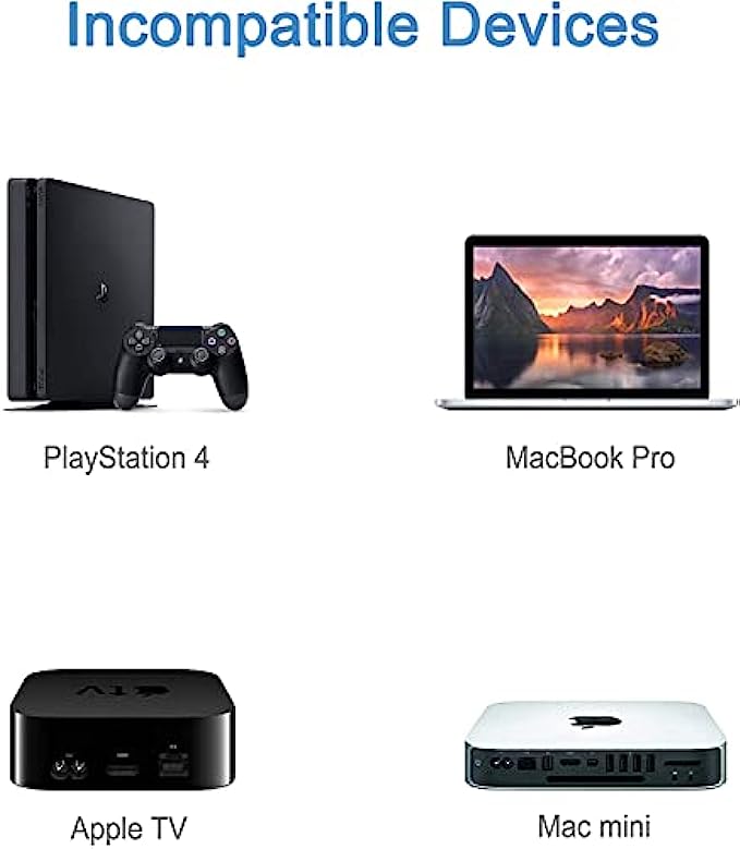 • BROAD COMPATIBILITY - The HDMI-VGA adapter is compatible with computer, pc, desktop, laptop, ultrabook, notebook, Chromebook, Raspberry Pi, Intel Nuc, Roku, PS3, Xbox One, Xbox 360, Wii U, Set Top Box, TV BOX, or other devices with HDMI port; *NOT COMPATIBLE* with Blu-ray player and devices with low-power HDMI ports such as PS4, Apple MacBook Pro with Retina Display, Mac mini, and Apple TV