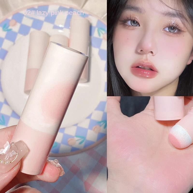 Natural matte plain powder blusher stick sponge powder blusher cream student glitter powder blusher