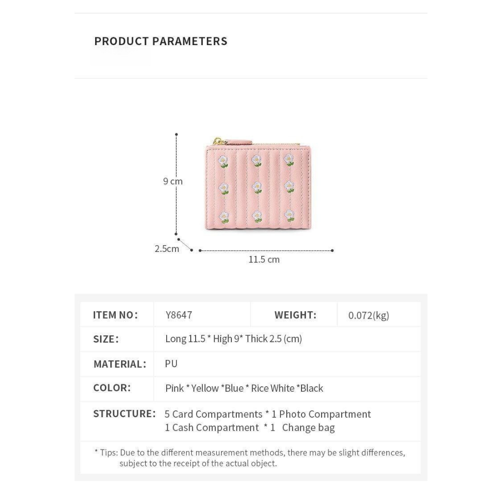 New Korean Version Embroidered Simple Cute Cropped Bifold Wallet For Woman