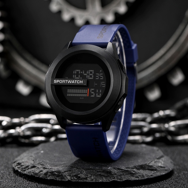 Men Watch Men's Watch Student Large Dial Silicone Sports Multi-Function Cold Light Waterproof Electronic Watch