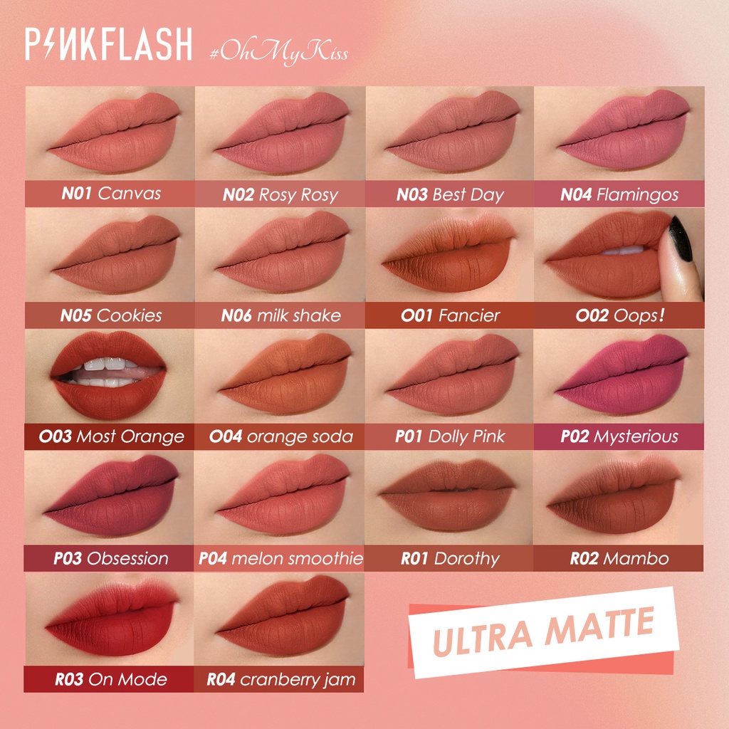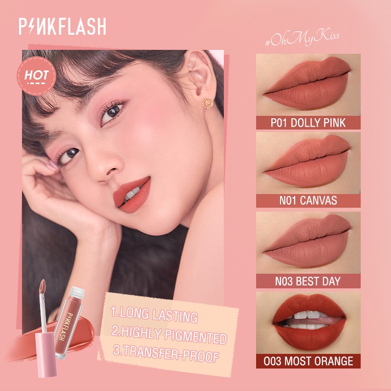 PINKFLASH Matte Lipstick Soft Long Lasting Moisturizing High Pigmentation 14 Colors