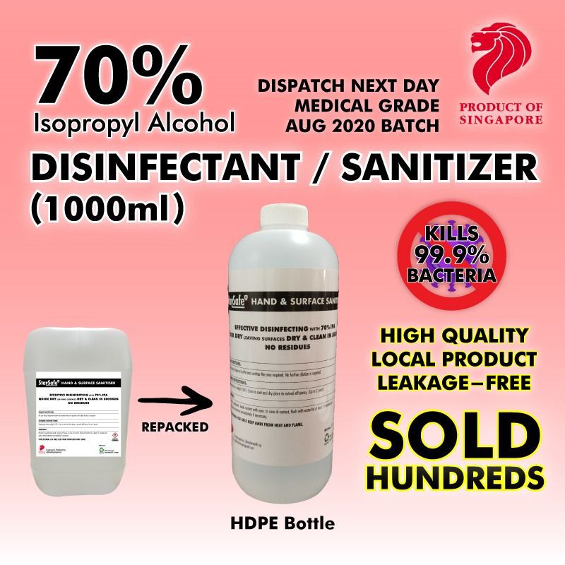 Sanitizer / Surface Disinfectant 70% Isopropyl Alcohol Based (Hospital grade) 5L 1L 500ML