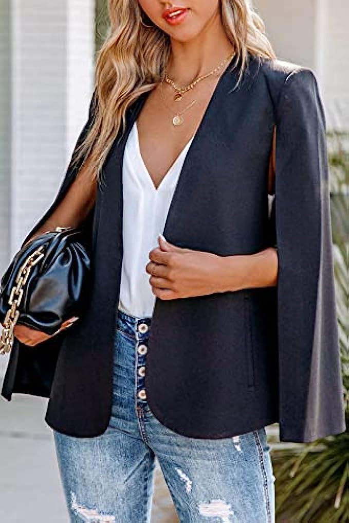 SHEWIN Womens Cape Blazer Split Sleeve Open Front Casual Jacket Coat Workwear Elegant Formal Cape Coat