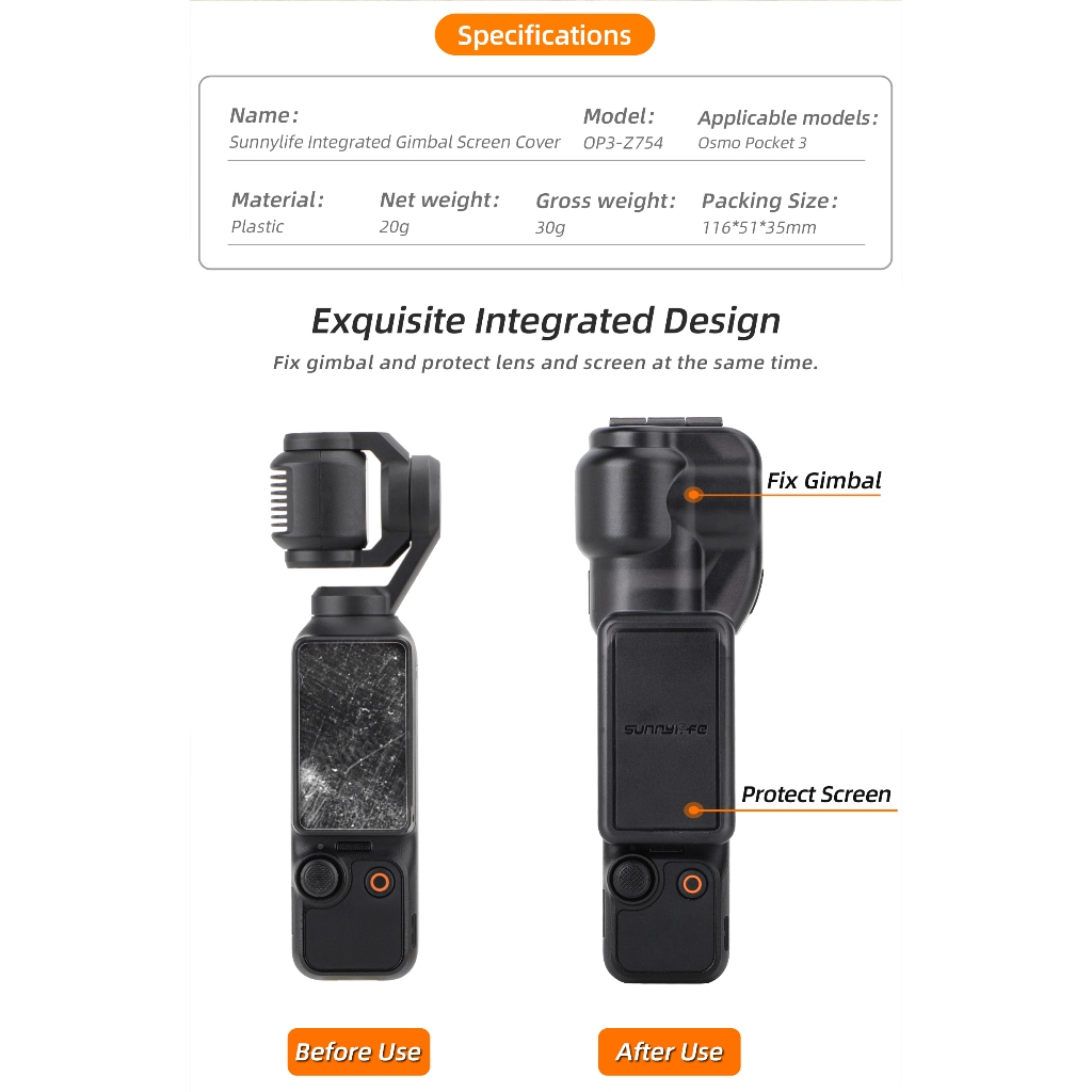 Sunnylife Integrated Gimbal Cover Camera Protector Screen Protective Case Accessories for Osmo Pocket 3 Gimbal Camera