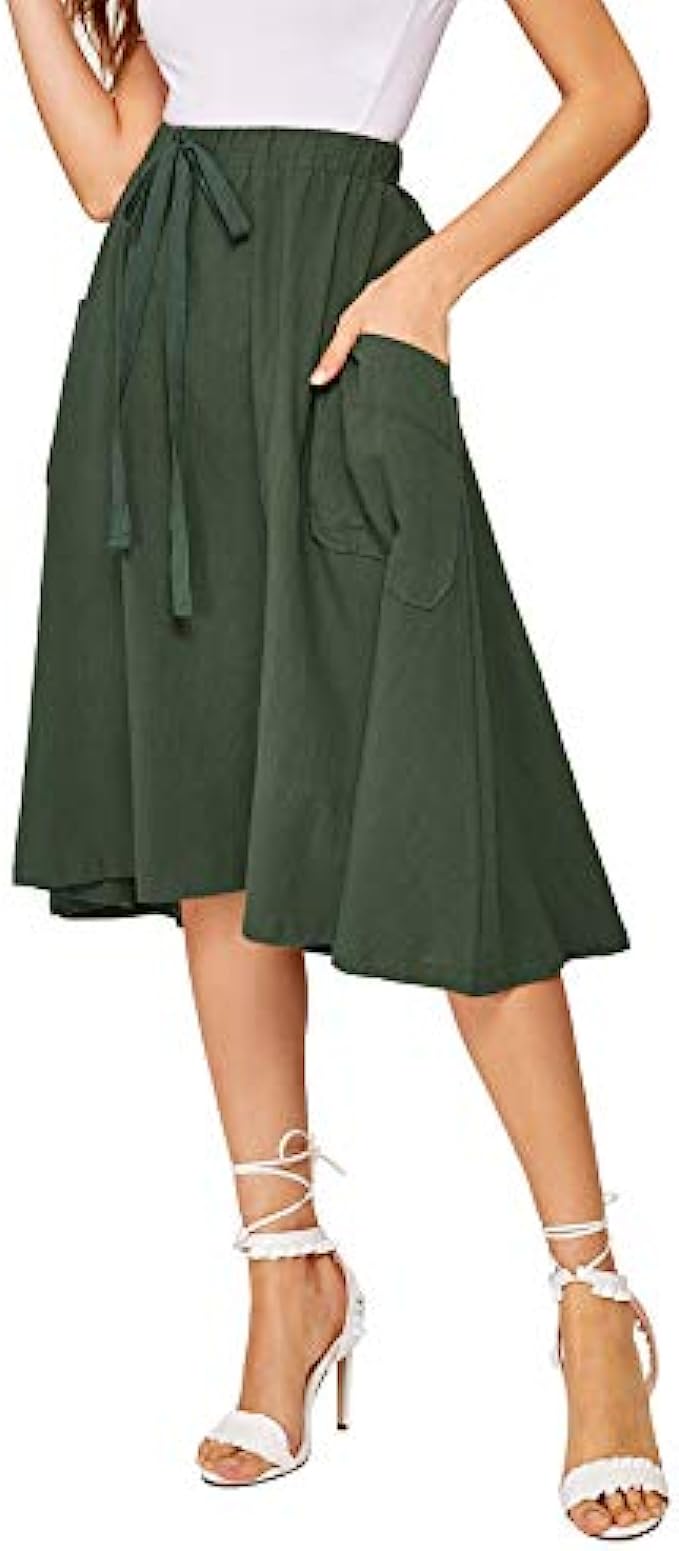 SweatyRocks Women's Casual High Waist Pleated A-Line Midi Skirt with Pocket