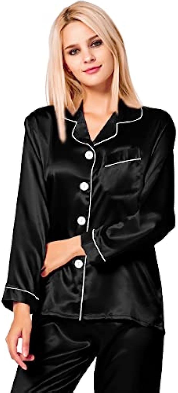 • Occasion: Women's Long Sleeve Silk Satin Pajamas Set, which is suitable for daily wearing and easy to match. Comfortable and suitable for lounging and sleeping, pajama party, girls day, bridal sleepwear, indoor, living room, bedroom, hotel, vacation, travel, and daily sleepwear.