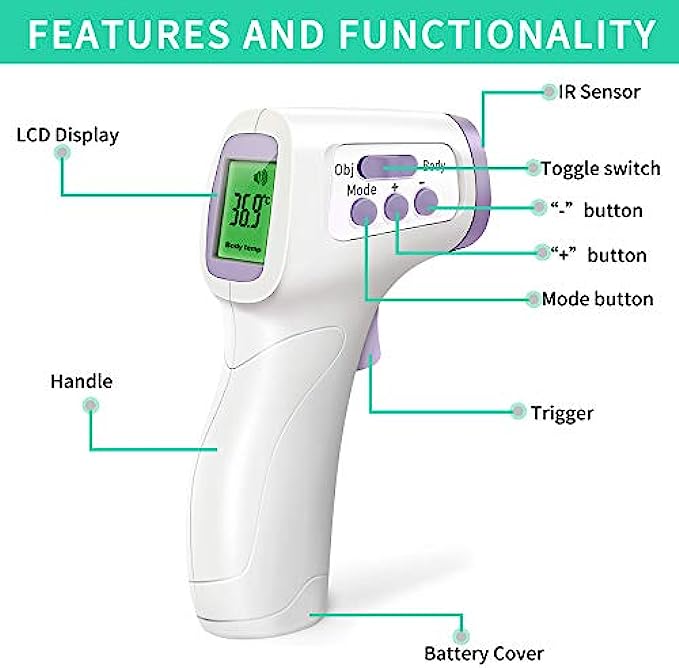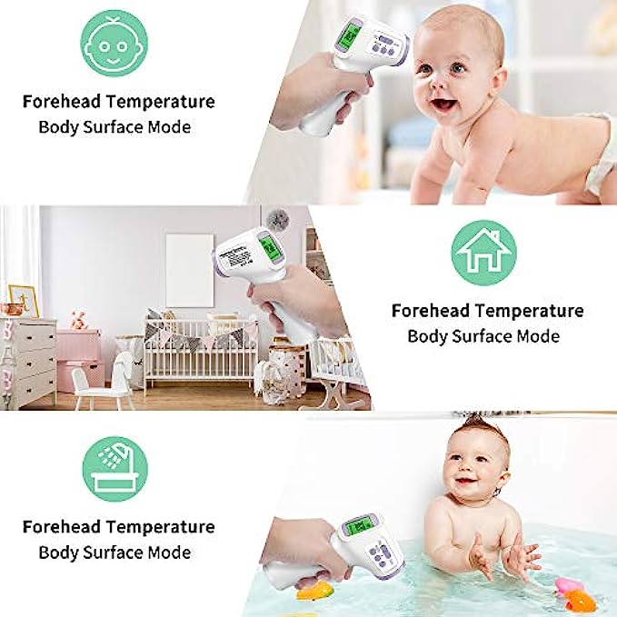 ➤【Multifunctional】The forehead thermometer is designed for all ages, adults, babies and elders. In addition to measuring forehead, it can also measure room, object, and liquids temperature. Great choice for families, nursery, hotels, school.