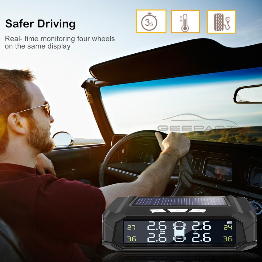 SG? |Smart Car TPMS Tyre Solar Pressure Monitoring LCD Warning System Monitor Tire Pressure Alarm Monitor +4 External Se