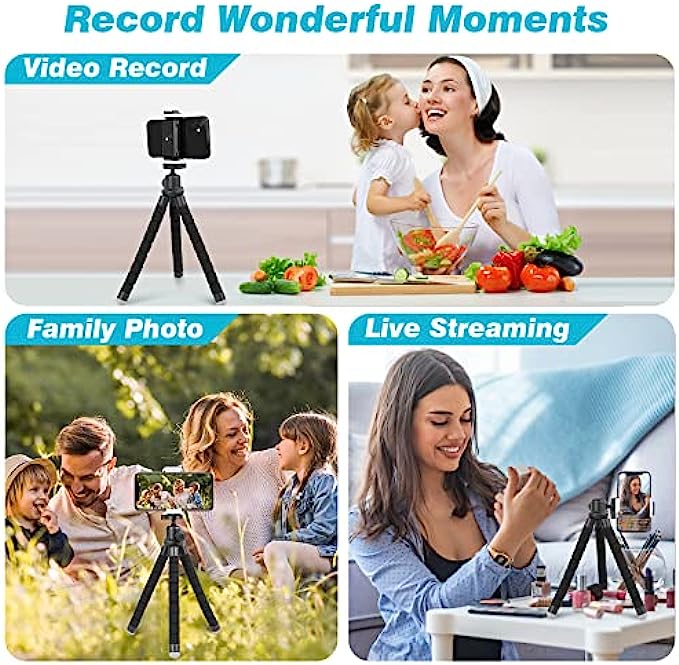 • 【Functional Accessories】 Comes with an upgraded universal phone holder (works for cellphones up to 5.23 inches wide, a wireless Bluetooth remote (compatible with most cell phones and controls up to 30 feet away). By a standard adapter screw thread, it is compatible with digital cameras and GoPro.