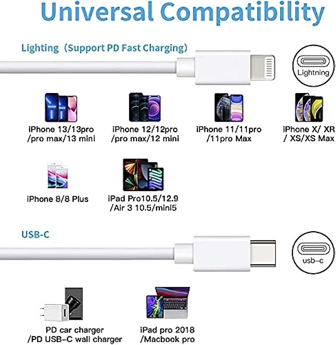 • 【Compatibility List】: Mitesbony USB C lightning cable supports PD Fast Charge for iPhone 13/13ProMax/13Pro/13Mini/12/12ProMax/12Pro/12Mini/11/11Pro/11ProMax/XS Max/XS/XR/X/8 Plus/8 and iPad 8th/iPad 2020/iPad Pro 12.9" gen1/iPad Pro 12.9" gen2/iPad Pro 10.5"/iPad Air3 10.5"/iPad mini5 7.9".The usb c iphone charger also supports standard charge for iPhone 7 Plus/7/6 Plus/6/6S Plus/6S /5 etc.